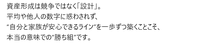 このラインは「見栄」ではなく、“安心して人生を選べる金額”の指標です。